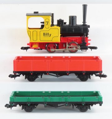 Fleischmann maakte deze treinen in spoor 0e in schaal 1:43. 0e is smalspoor en rijdt op 16mm spoorbreedte.