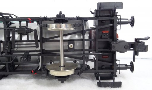 Deze prachtige wagon heeft een zwart chassis, 2 assen, metalen wielen,