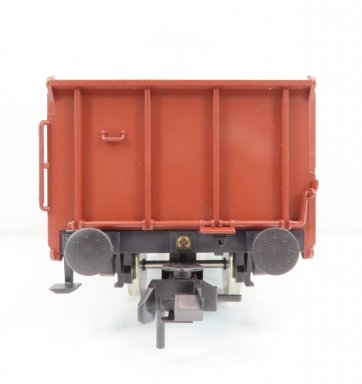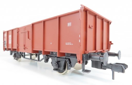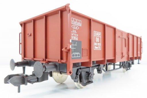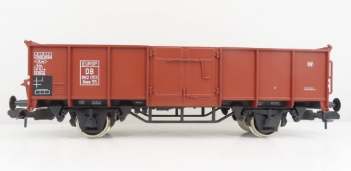 Deze fraaie occasion 2-assige open hogebak wagen type 0mm 55 van de DB heeft metalen wielen.