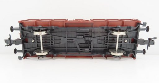 Bedrijfsnummer 882 053, zwart onderstel, bruine open bak, verende buffers, fijne opschriften.