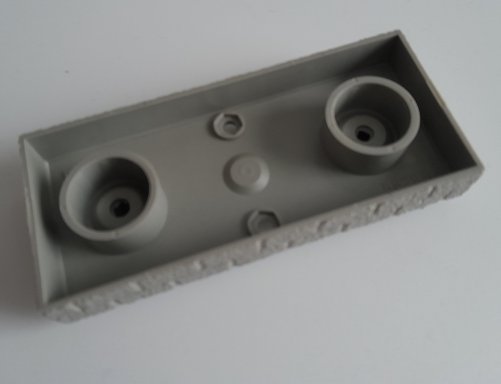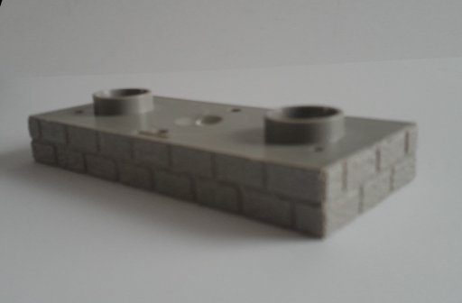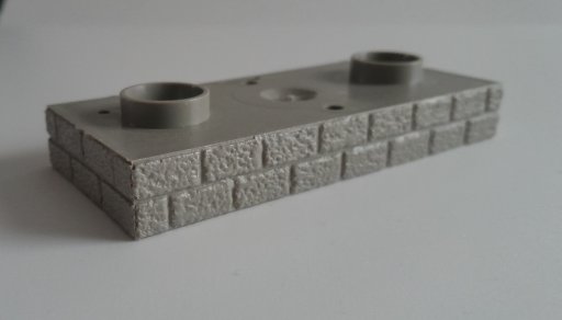 Brugpijler, imitatie van een gemetselde muur in twee rijen gezet. De afzonderlijke brugpijlers kunnen gestapeld worden. Daardoor ontstaan verschillende pijlerhoogtes