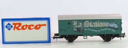 Roco H0 modeltrein goederenwagon - twee assige gesloten goederenwagen met opschrift "La Statione" van de DB.